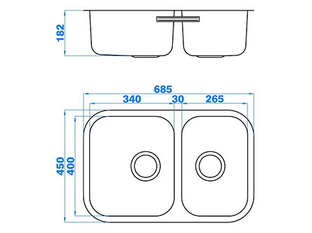 型號(hào):670TD款式:雙盆安裝方式:臺(tái)底式總尺寸:685*450 mm大盆:340*400*182 mm小盆:265*400*182 mm