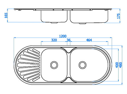 型號:107款式:單瀝水板雙盆安裝方式:嵌入式總尺寸:1200*480 mm大盆:464*400*175 mm小盆:320*400*165 mm
