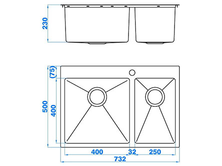 型號(hào):5426款式:雙盆安裝方式:嵌入式總尺寸:732*500 mm大盆:400*400*230 mm小盆:250*400*230 mm