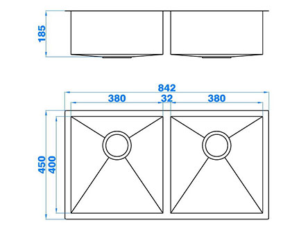 型號:708款式:雙盆安裝方式:臺底式總尺寸:842*450 mm雙盆:380*400*185 mm